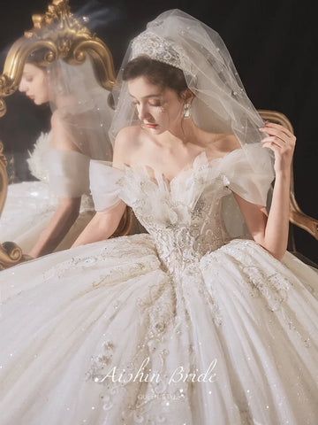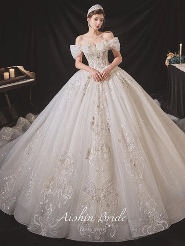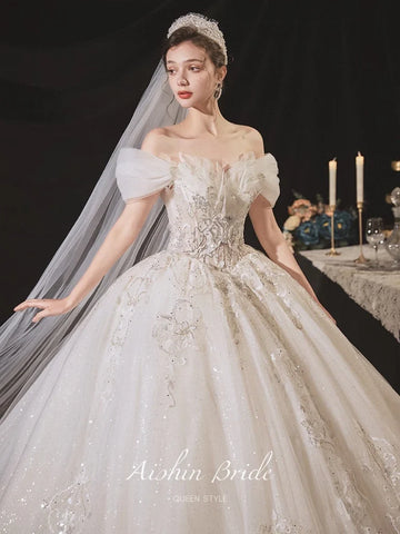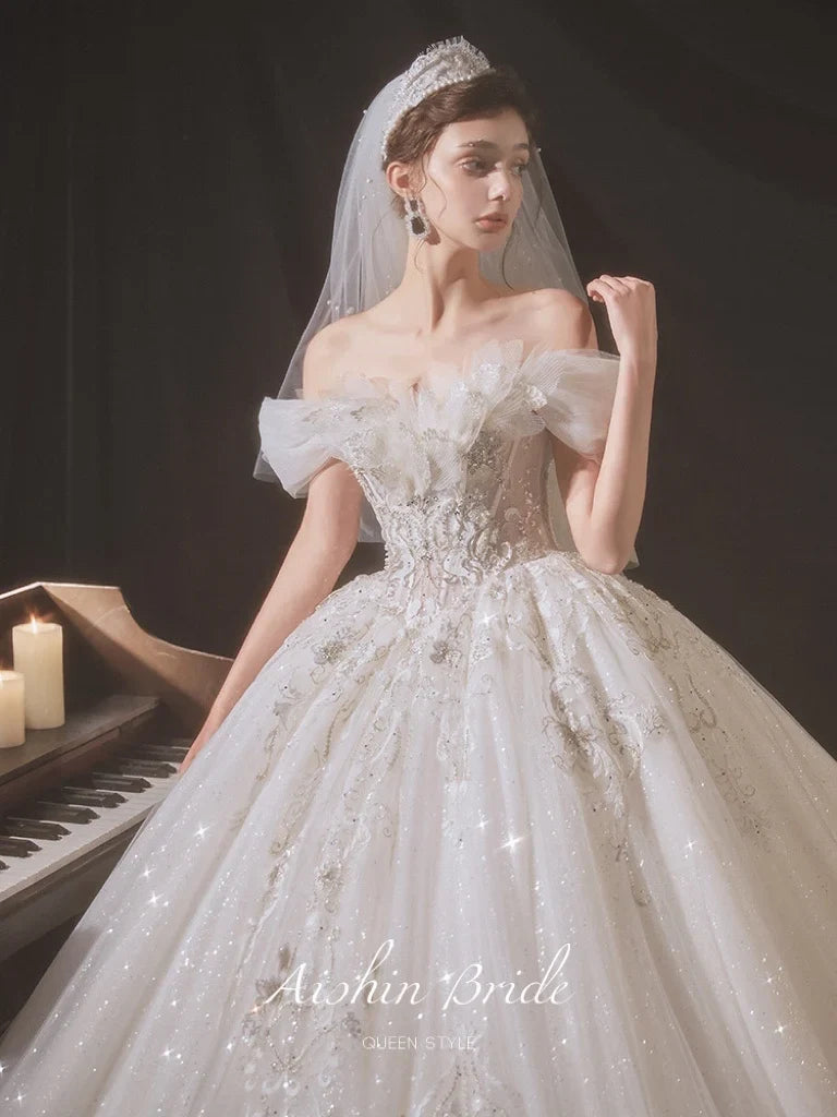 Luxury Boat Neck Wedding Dress EDL108 - Sweep Train / Custom size