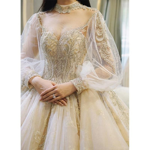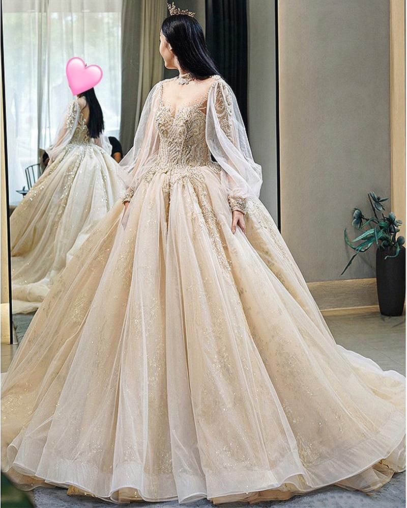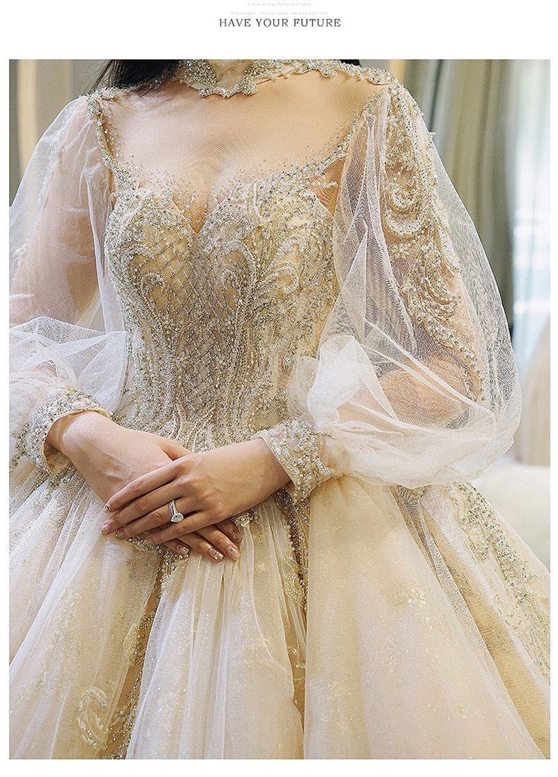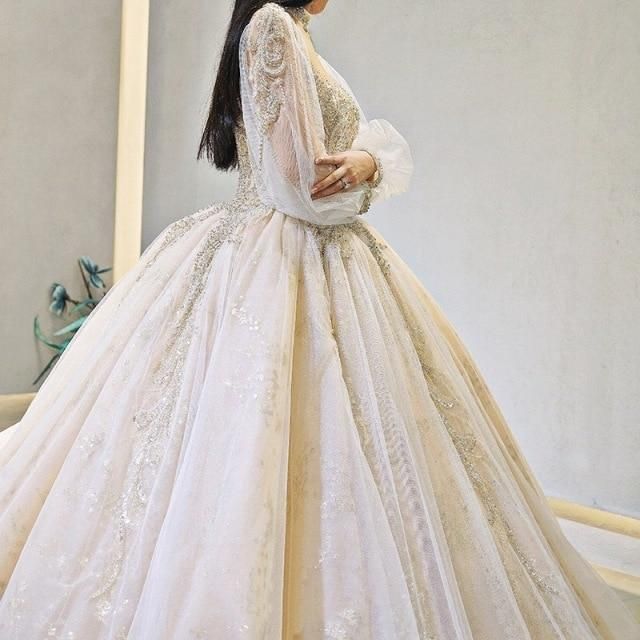 Actual Images: YesNeckline: highSleeve Length(cm): FullWedding Dress Fabric: Tulle & Radiant Taffeta with LaceTrain: Court TrainFor Pregnant Women: YesDresses Length: Floor-LengthBack Design: Lace-UpItem Type: Wedding DressesSleeve Style: lantern SleeveBuilt-in Bra: Yesis_customized: YesDecoration: AppliquesDecoration: BeadingDecoration: EmbroideryDecoration: LaceFashion Element: vintageModel Number: EF076Waistline: NaturalSilhouette: A-LINEBridal gown with sleeve: Yesvestido de casamento: bridal gown luxurylong sleeve white wedding dress: regular / plus sizeOccasion: Spring/Summer/Autumn/Winter Wedding Party