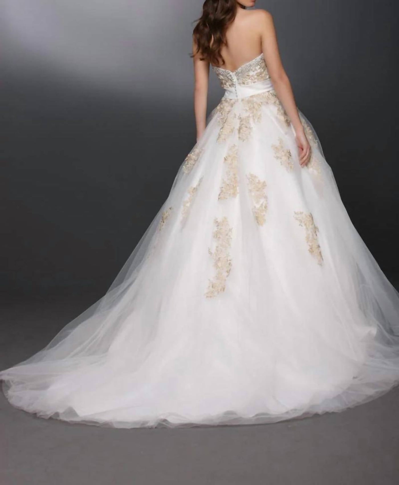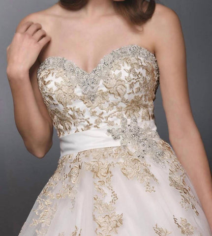 Make your special day unforgettable with the Strapless Tulle And Lace Wedding Gown by DaVinci Bridal. Designed in an elegant ivory hue, this gown features a romantic sweetheart neckline and a flattering A-line silhouette. The combination of tulle and lace offers a textured, patterned look, ideal for a fall wedding. Simply secure with the convenient zip closure and step into a world of timeless beauty.