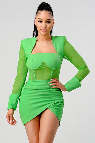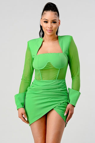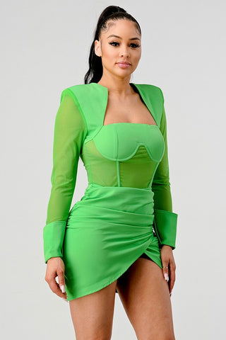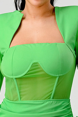 Lady Gaga fashion shoulder pad mini dress - Green / S