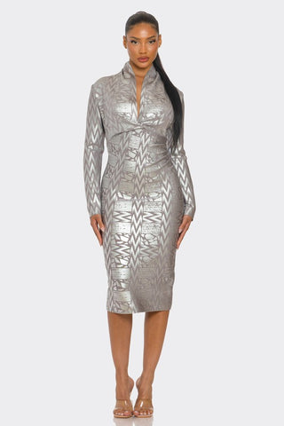 Metallic Zigzag Holiday Bandage dress - GOLD / S