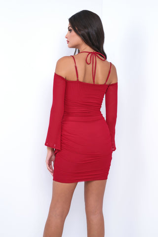 The Zoe Halter Front Ruched Detail Mini Dress (Red) Sale