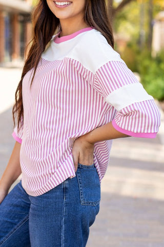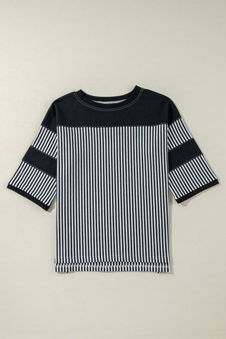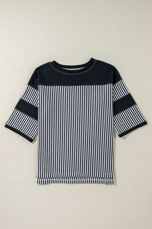 This top is both stylish and cozy, a favorite among ladies. The patchwork design is the heart and soul of this loose t-shirt, giving it a effortlessly chic look with a timeless striped pattern. And with versatile 3/4 sleeves, it's perfect for the transitional season. Material - 95%Cotton+5%Elastane
