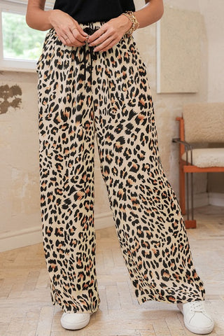 Effortlessly chic, these wide-leg pants feature an allover leopard print, perfect for adding a bold touch to any outfit.