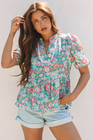 This blooming top brings forth a crisp and girly appearance. A one-of-a-kind notch-studded collar brings a dash of elegance to the structure. Short balloon sleeves craft a chic and amorous outline. Ruffled hem upgrades it with a flattering and quirky touch. Material - 100%Polyester