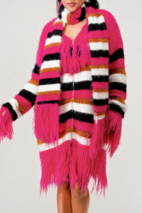 Elevate your winter wardrobe with the luxurious comfort and style of the Athina Fuzzy Striped Sweater, accompanied by a matching striped scarf. This cozy ensemble seamlessly combines fashion and warmth, making it a must-have for the colder seasons.