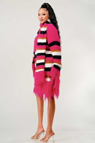 Versatile Style: Whether you're heading to work, a casual outing, or a winter gathering, the Athina Fuzzy Striped Sweater effortlessly adapts to various occasions with its timeless design.