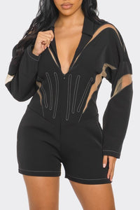 Chic Mesh-Panelled Black Romper - BLACK / S